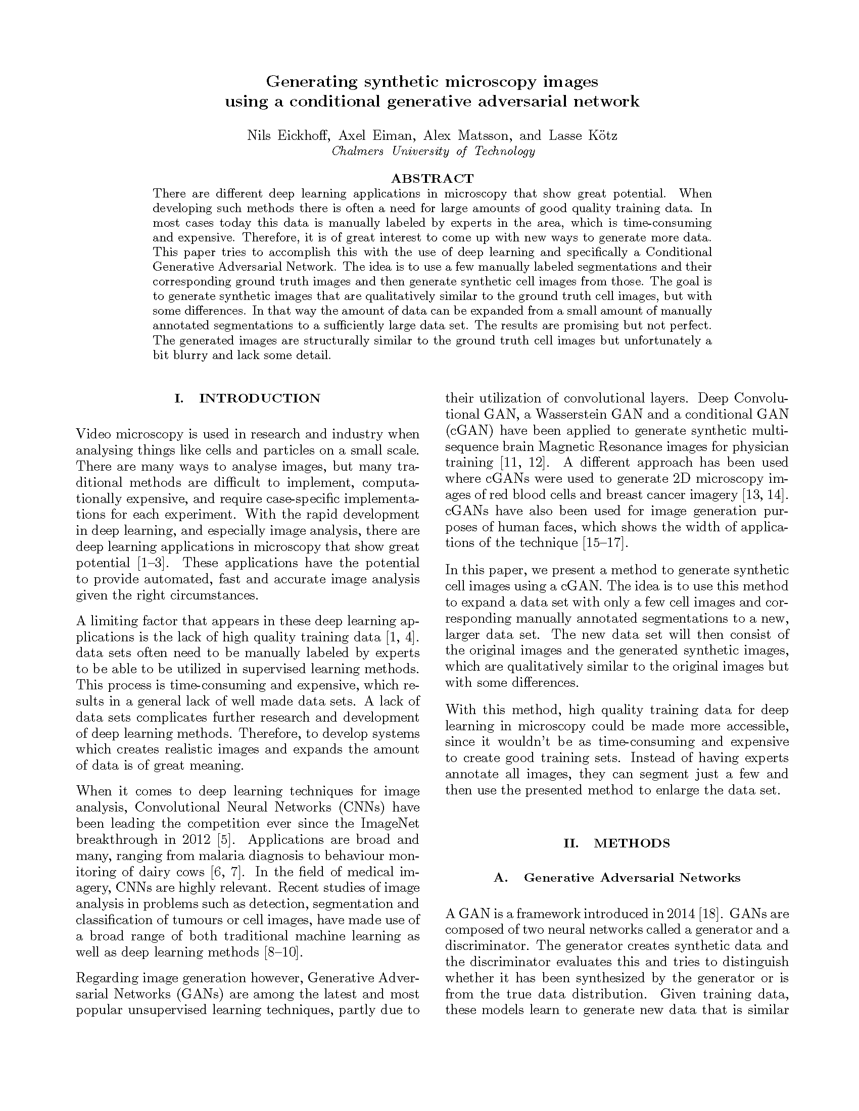 Generating synthetic microscopy images using a cGAN